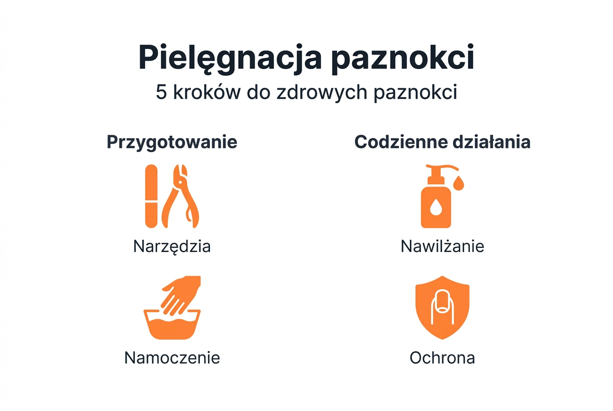Regularna dezynfekcja narzędzi to absolutna podstawa. Nigdy nie pożyczaj ani nie użyczaj swoich cążek czy pilników. Grzyby i bakterie łatwo przenoszą się między osobami przez wspólne narzędzia. Jeśli chodzisz do salonu, obserwuj procedury czyszczenia.